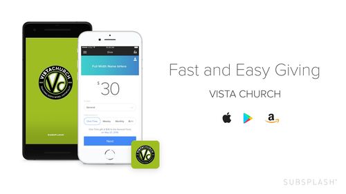 Giving through the VISTA Church app is the easiest and best way to give. Download it today to discover information about Sundays, how to connect, our location, and watch our sermons, all from your phone.